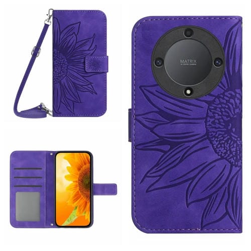 Funda de Cuero para Honor X9B con Cordón y Diseño Sun Flower (Púrpura Oscuro)
