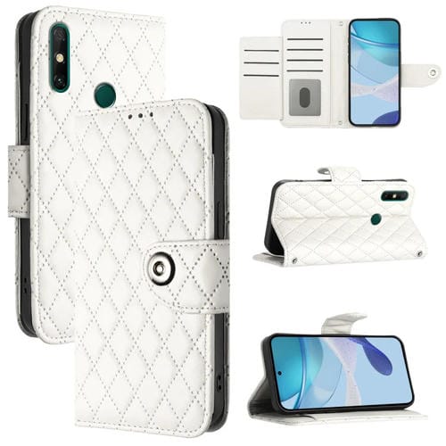Funda para Huawei Enjoy 20 Se y Y7A con Tapa de Cuero Textura Rómbica y Cordón (Blanco)