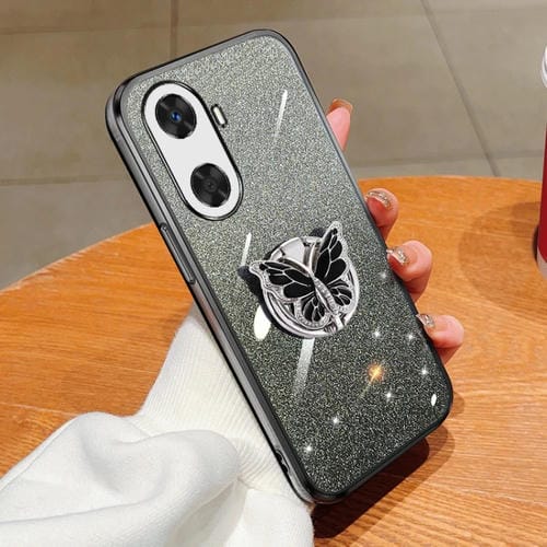 Funda TPU para Huawei Enjoy 60 con Soporte de Mariposa y Brillo Degradado (Negro)