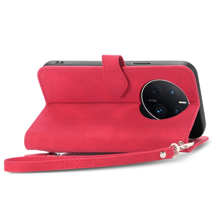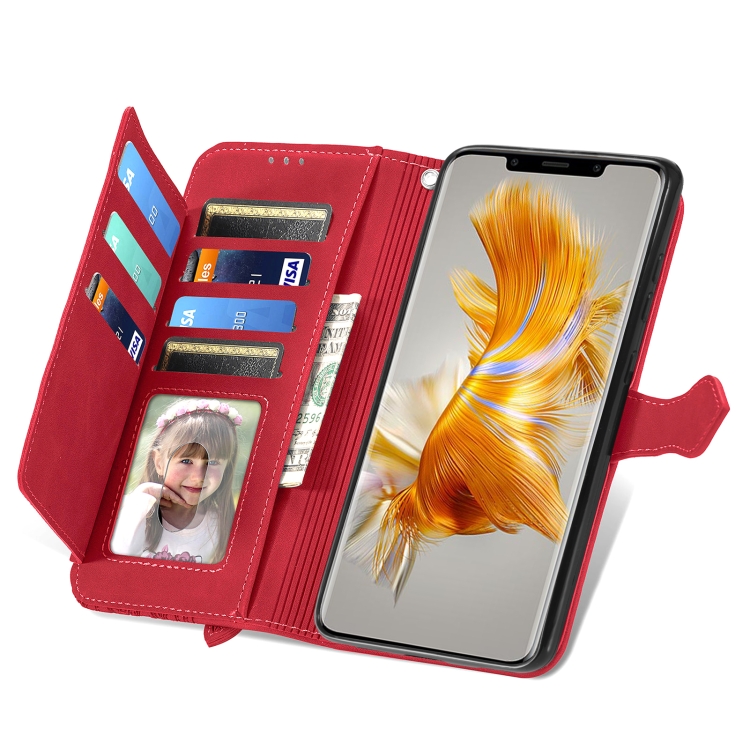 Estuche para Huawei Mate 50 Pro de Cuero a Prueba de Golpes con Flores en Relieve (Rojo)