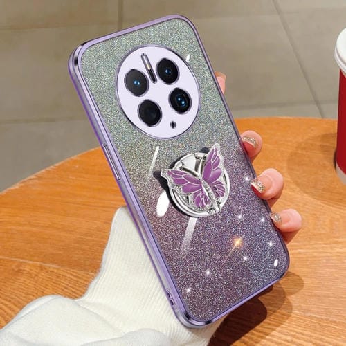Funda para Huawei Mate 50 Pro TPU con Soporte de Mariposa y Brillo Degradado (Púrpura)