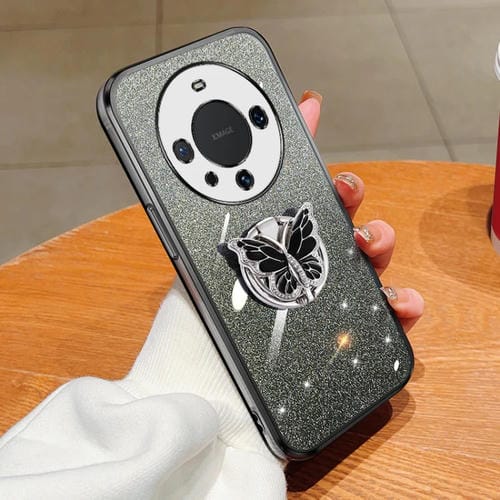 Funda para Huawei Mate 60 Pro TPU con Soporte de Mariposa y Brillo Degradado (Negro)