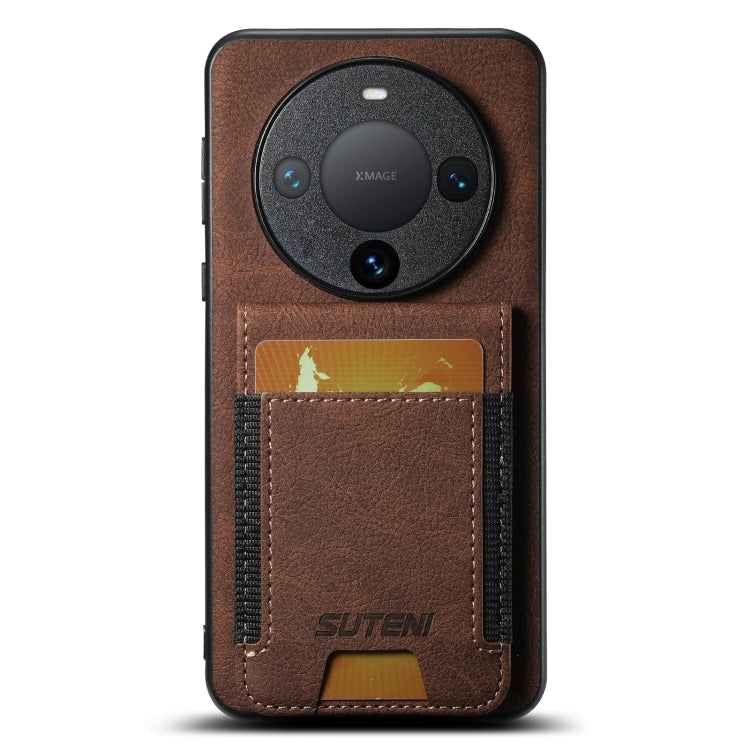 Funda para Huawei Mate 60 Pro Suteni H03 con Soporte para Tarjeta de Cuero Litchi (Marrón)