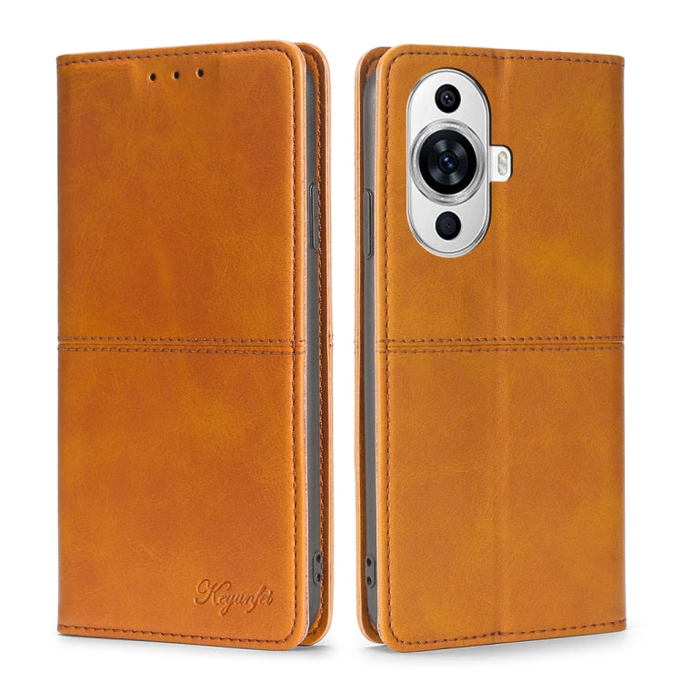 Funda de Cuero Magnético para Huawei Nova 11 4G con Textura de Vaca (Marrón Claro)