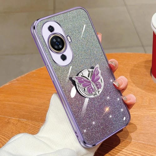 Funda TPU para Huawei Nova 11 con Soporte de Mariposa y Brillo Degradado (Púrpura)