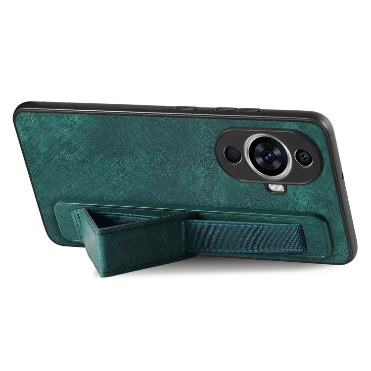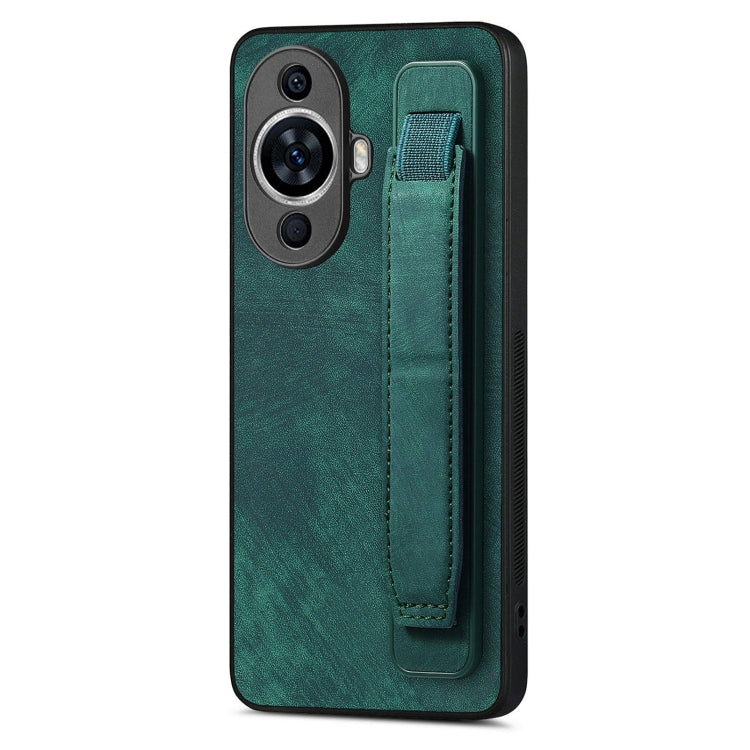 Funda Trasera de Cuero para Huawei Nova 11 con Soporte para Pulsera Retro (Verde)