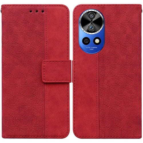 Funda de Cuero para Huawei Nova 12 Pro con Relieve Geométrico (Rojo)