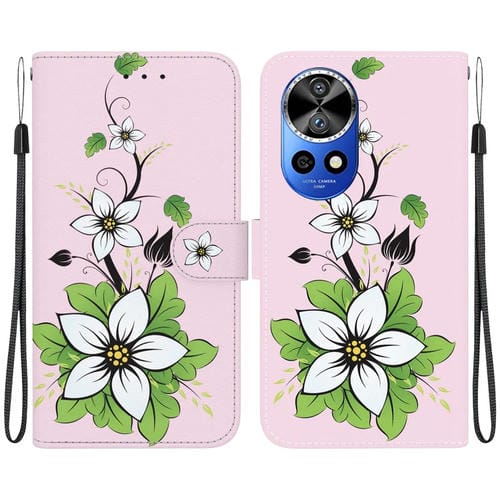 Funda de Cuero para Huawei Nova 12 Pro con Dibujo Coloreado y Textura de Cristal (Lirio)