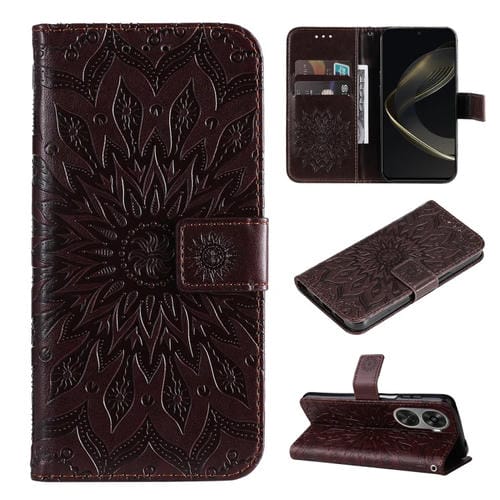 Funda de Cuero con Tapa para Huawei Nova 12 Se y Nova 11 Se con Patrón de Girasol en Relieve (Marrón)
