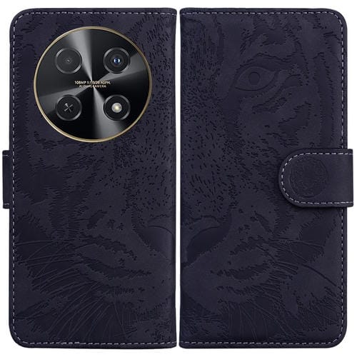 Funda de Cuero para Huawei Nova 12I con Tapa y Patrón de Relieve de Tigre (Negro)