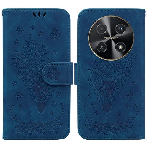Funda para Huawei Nova 12I de Cuero con Relieve Mariposa y Rosa (Azul)
