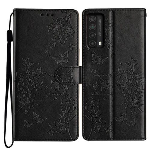 - 1x Funda para Huawei P Smart 2021 y Y7A de Cuero con Relieve Flor y Mariposa (Negro)