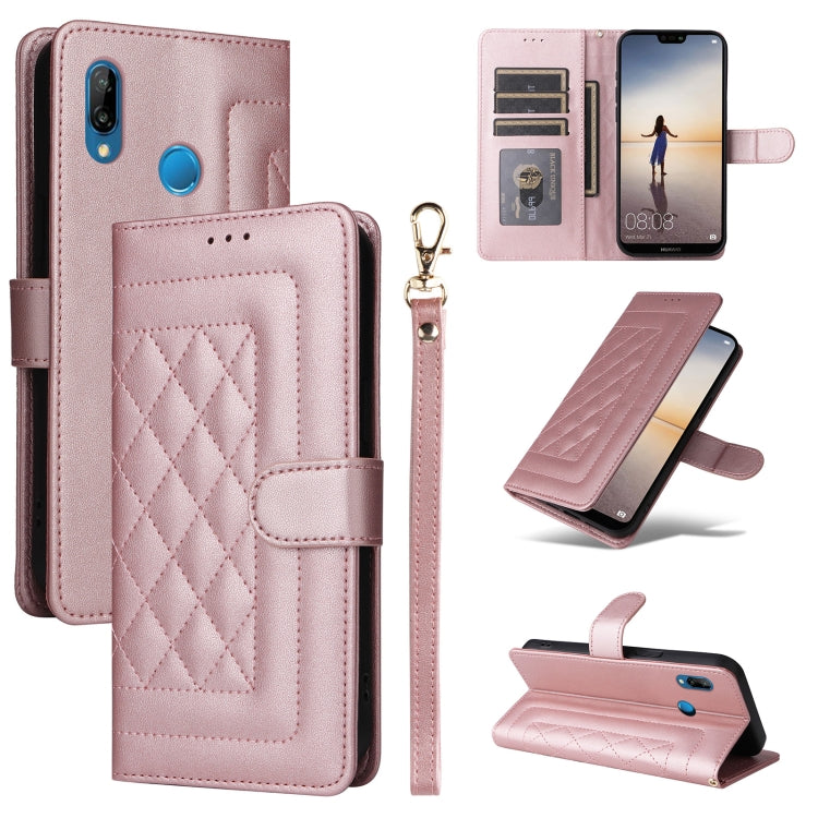Funda de Teléfono Huawei P20 Lite con Tapa de Cuero Diamond Lattice (Oro Rosa)