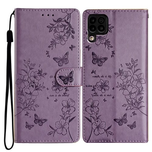 Funda para Huawei P40 Lite de Cuero con Relieve Flor y Mariposa (Púrpura)