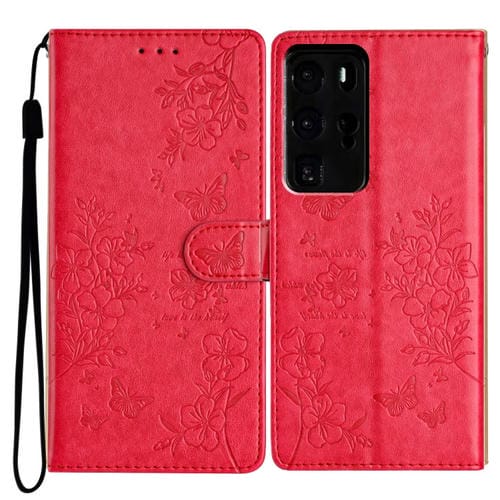 • 1x Funda de Cuero Huawei P40 Pro Butterfly Love Flower en Relieve (Rojo)