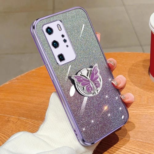 Funda TPU Huawei P40 Pro con Soporte de Mariposa y Brillo Degradado (Púrpura)
