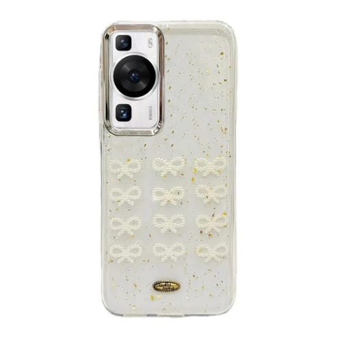 Estuche TPU para Huawei P60 y P60 Pro con Lazo de Perlas y Arcos de Lámina Dorada