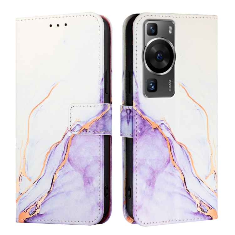 Funda de Cuero con Tapa para Huawei P60 / P60 Pro Pt003 con Patrón de Mármol (Blanco Púrpura)