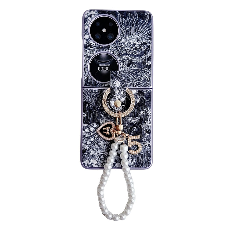 Estuche para Huawei Pocket 2 Cobertura Total Bordado con Cadena de Cuentas (Azul)