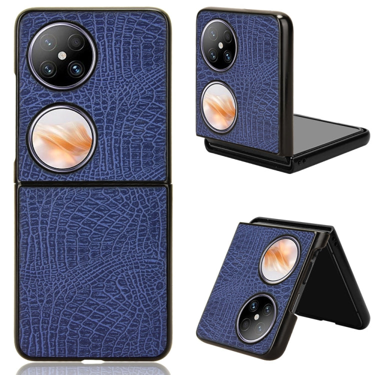 Funda para Teléfono Plegable Huawei Pocket 2 de Cuero con Textura de Cocodrilo (Azul)