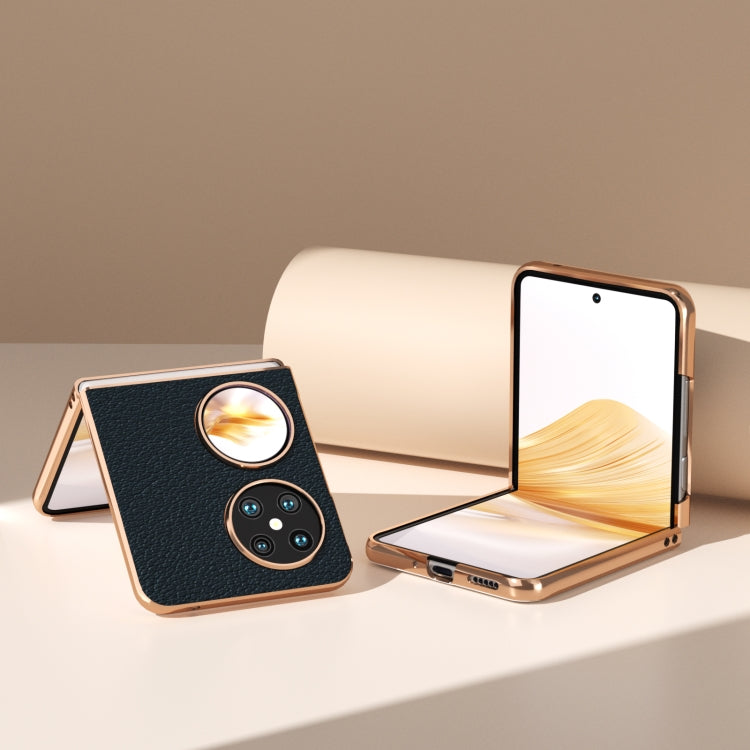 Funda para Huawei Pocket 2 Serie Wave de Cuero Genuino con Nanochapado (Verde)