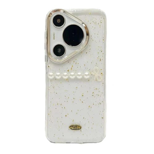 - 1x Estuche TPU Huawei Pura 70 con Lazo de Perlas y Lámina Dorada (Perla)