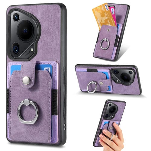 Funda para Huawei Pura 70 con Billetera, Tarjeta y Anillo, Sensación de Piel Ultra Retro (Púrpura)