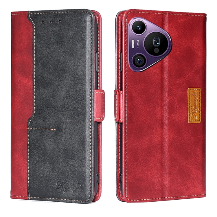 Funda de Cuero para Huawei Pura 70 Pro y 70 Pro + 5G con Hebilla Lateral (Rojo + Negro)