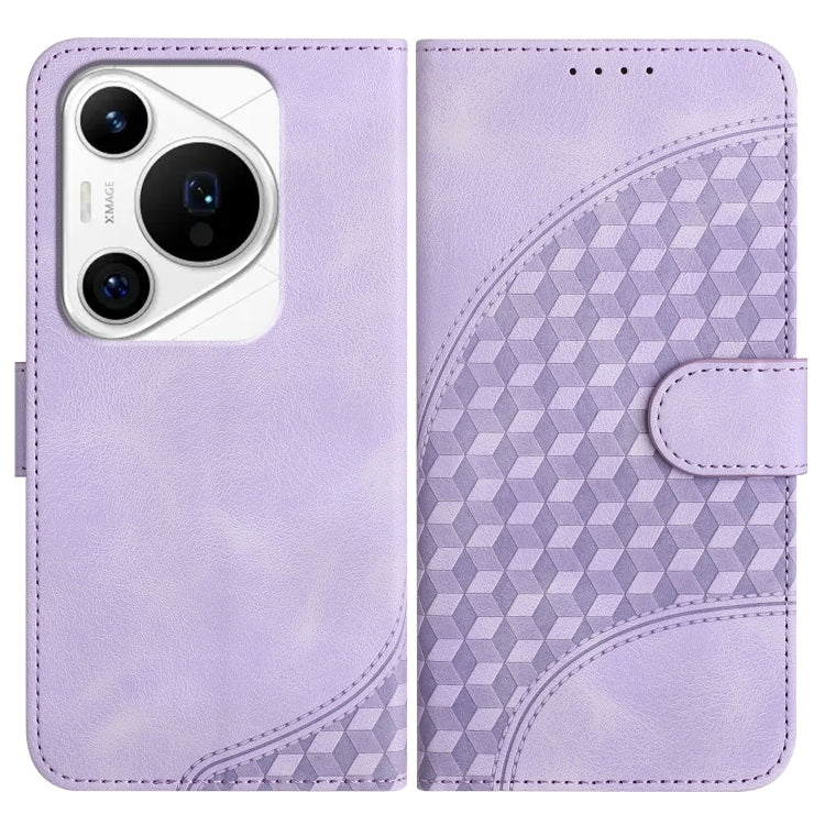 Funda de Cuero Huawei Pura 70 Pro y 70 Pro + Yx0060 con Relieve Cabeza de Elefante y Cordón (Púrpura Claro)