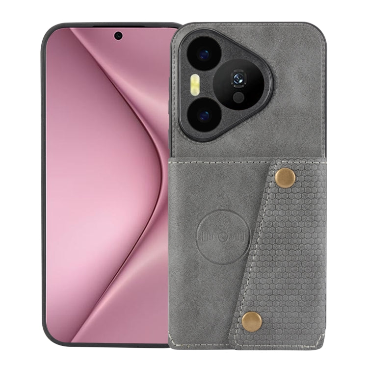Funda Magnética Huawei Pura 70 Pro con Ranuras para Tarjetas y Doble Hebilla (Gris)