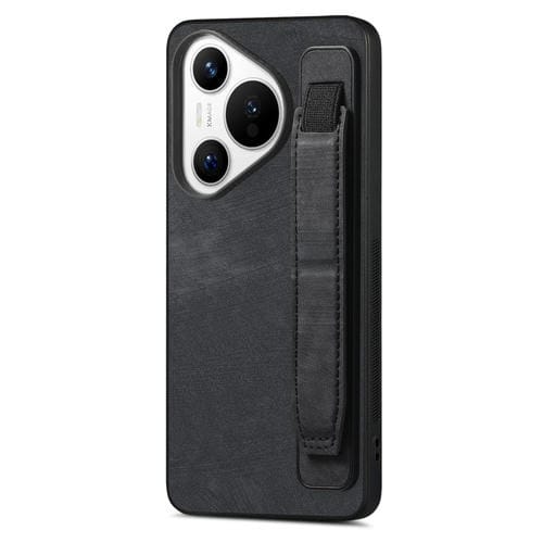 - 1x Funda Trasera de Cuero Retro para Huawei Pura 70 Pro con Muñequera (Negro)