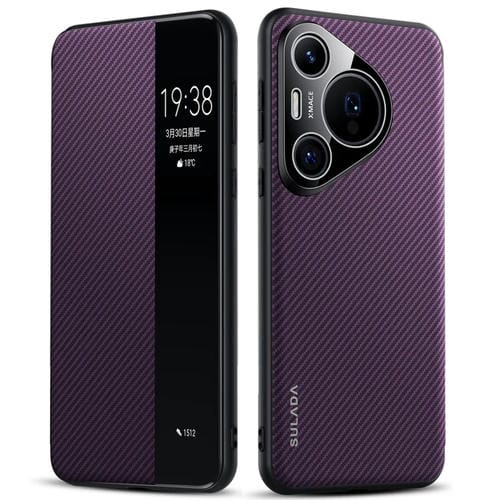 - 1x Funda de Cuero Huawei Pura 70 Sulada Kevlar 600D con Ventana Inteligente (Púrpura)
