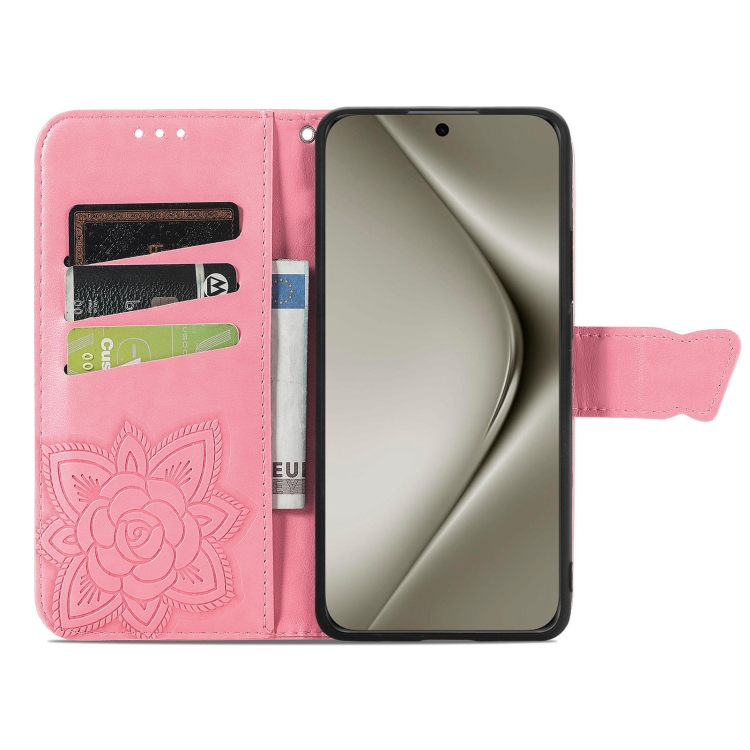 Funda de Cuero En Relieve para Huawei Pura 70 Ultra Butterfly Love Flower (Rosa)