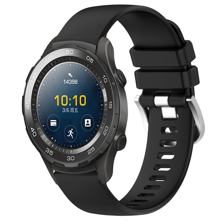 Correa de Silicona para Huawei Watch 2 con Hebilla Plateada Líquida 20mm (Negro)