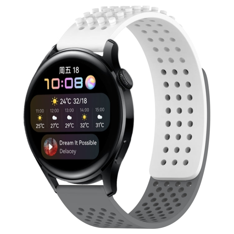 Correa de Silicona para Huawei Watch 3 con Puntos 3D Transpirables y Orificios 22mm (Blanco + Gris)