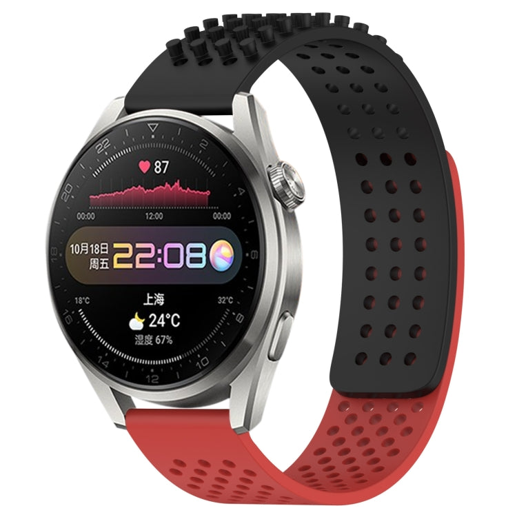 Correa de Silicona para Huawei Watch 3 Pro con Puntos 3D Transpirables y Orificios de 22mm (Negro + Rojo)