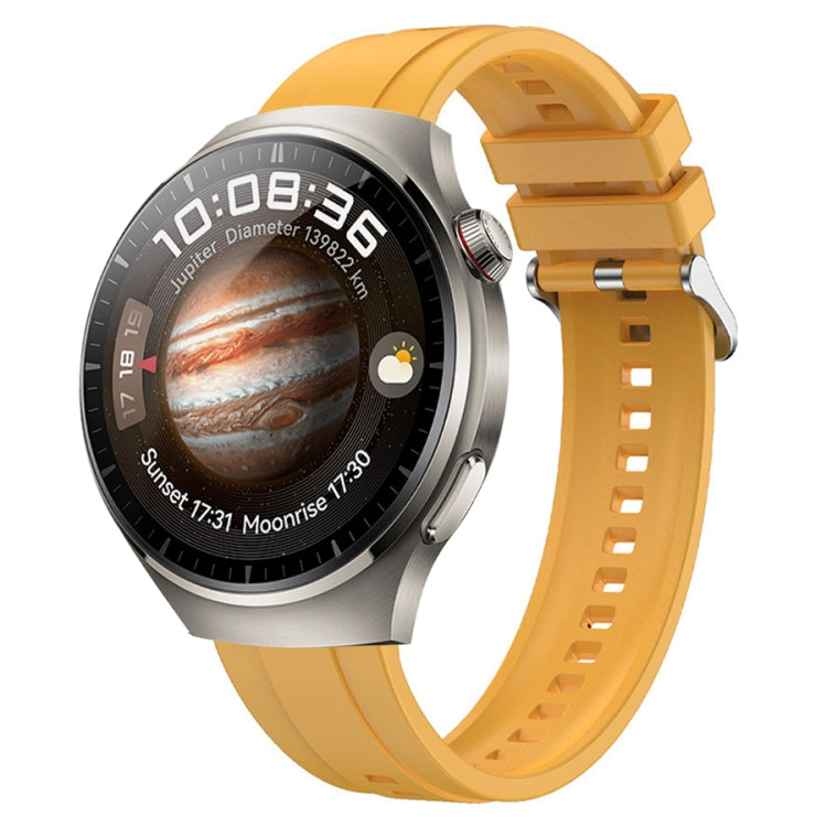 Correa de Silicona para Huawei Watch 4 Pro con Patrón de Neumático y Hebilla Plateada (Amarillo)