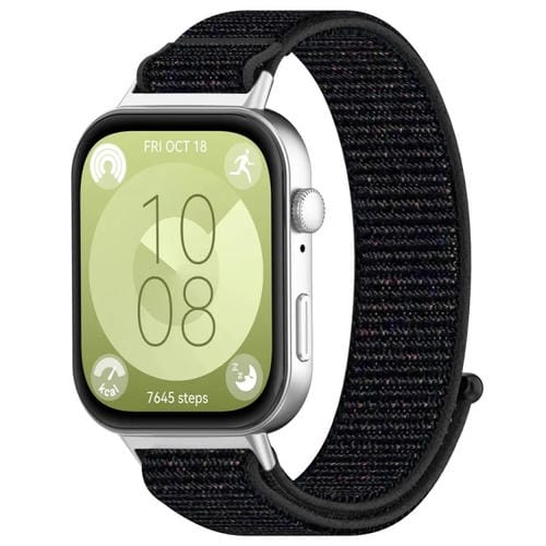 Correa de Nailon para Huawei Watch Fit3 con Cierre de Gancho y Bucle (Negro)