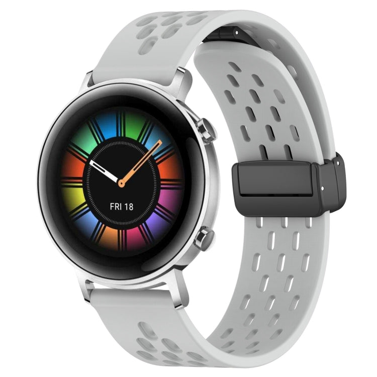 Correa de Silicona para Huawei Watch GT2 42mm 20mm con Cierre Magnético Plegable (Gris Claro)