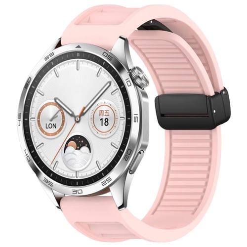 Correa de Silicona para Huawei Watch GT4 46mm 22mm con Hebilla Magnética Plegable (Rosa)