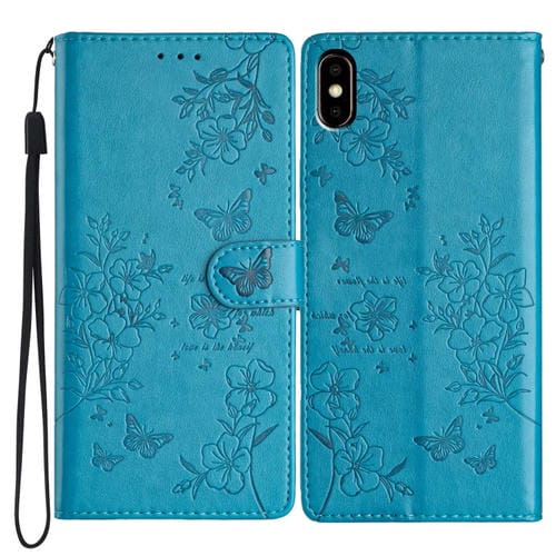 Funda para Huawei Y5 2019 de Cuero con Relieve de Flor y Mariposa (Azul)