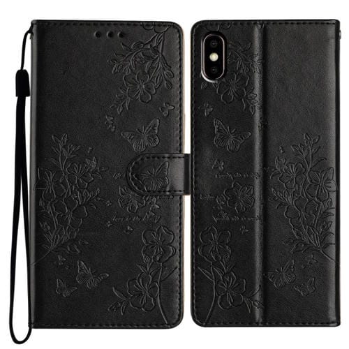 Funda para Huawei Y5 2019 de Cuero con Relieve Flor y Mariposa (Negro)