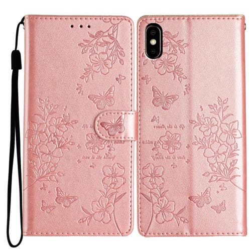 Funda para Huawei Y5 2019 de Cuero con Relieve de Flor de Amor y Mariposa (Oro Rosa)