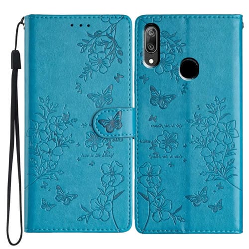 - 1x Funda para Huawei Y6 2019 de Cuero con Relieve Flor y Mariposa (Azul)
