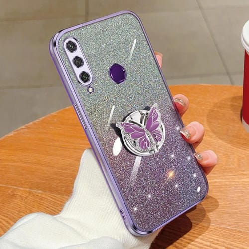 Estuche TPU para Huawei Y6P con Soporte de Mariposa y Brillo Degradado (Púrpura)