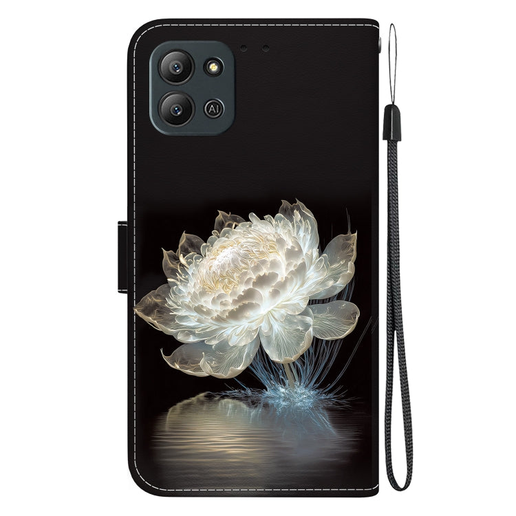 Estuche de Cuero para Infinix Hot 11 2022 con Dibujo Coloreado y Textura de Cristal (Peonía)