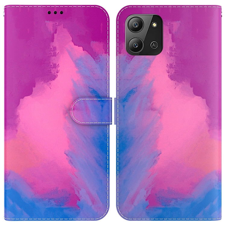 Funda de Cuero para Infinix Hot 11 (2022) con Tapa Horizontal y Patrón de Acuarela (Púrpura Rojo)