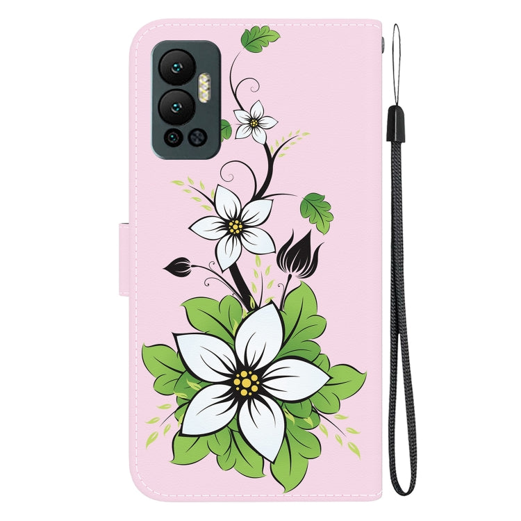 Estuche de Cuero para Infinix Hot 12 con Dibujo Coloreado y Textura de Cristal (Lirio)