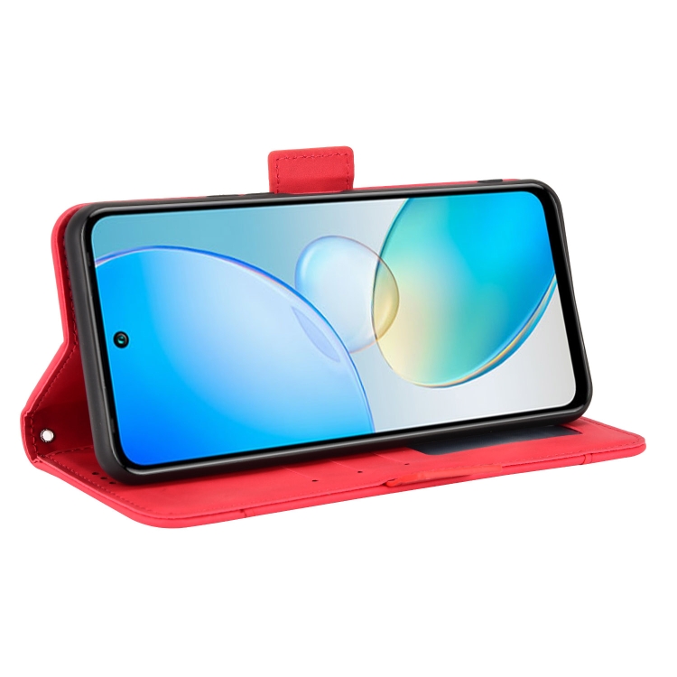 Funda de Cuero para Infinix Hot 12 Skin Feel con Ranuras para Tarjetas (Rojo)