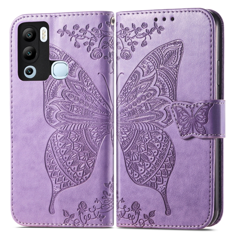 Estuche para teléfono Infinix Hot 12I Butterfly Love Flower de cuero en relieve (Lavanda)